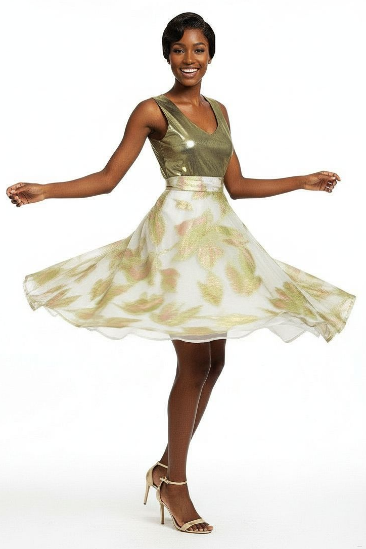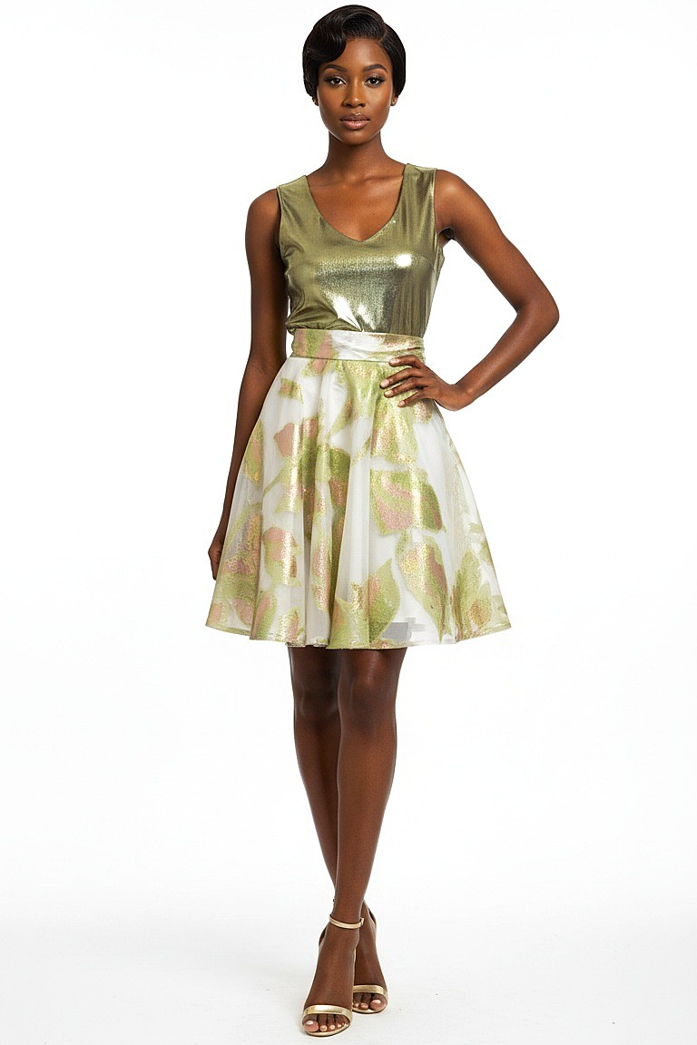 Bronze Metallic Splash High Neck Dress